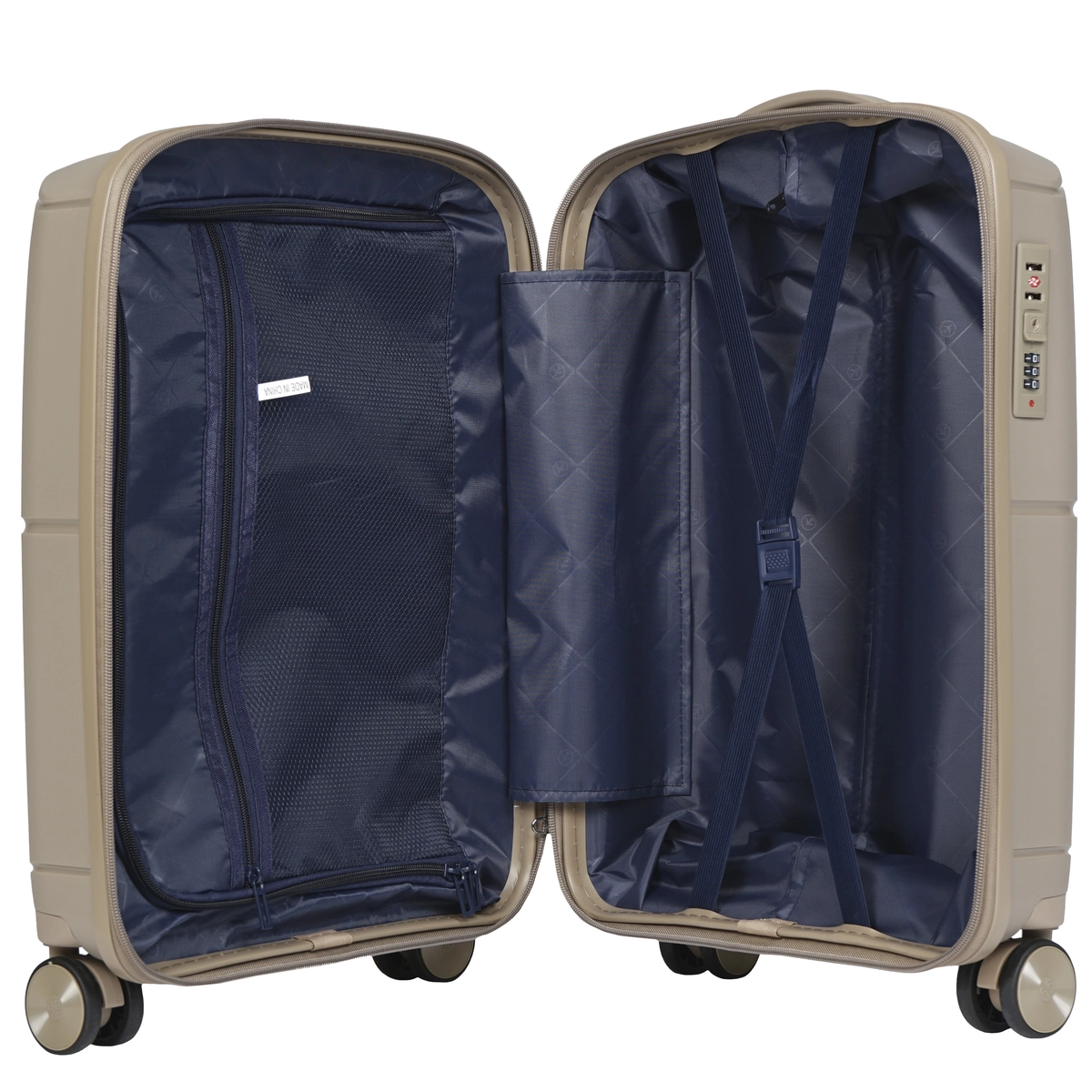 Валіза має два основних відділення, одне з текстильною кришкою на блискавці та інше з притискними ременями. Це дозволяє вам легко організувати речі та зберігати порядок протягом усієї подорожі.